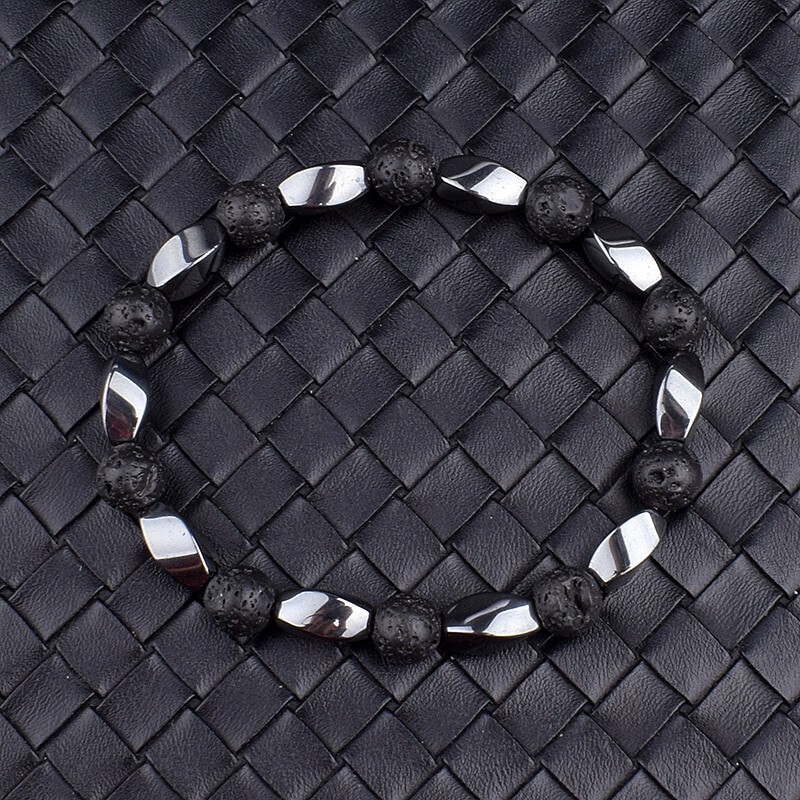 Bracelet de perles hématite et pierre de lave, sur mesure Homme femme enfant