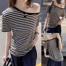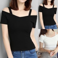 T-shirt femme été épaules dénudées coupe slim manches courtes décontracté