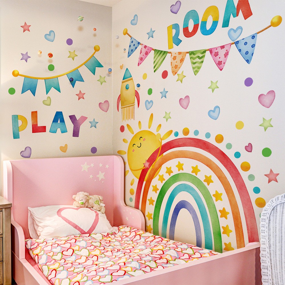 Décor chambre d'enfant art mural coloré grandes feuilles autocollants autocoll