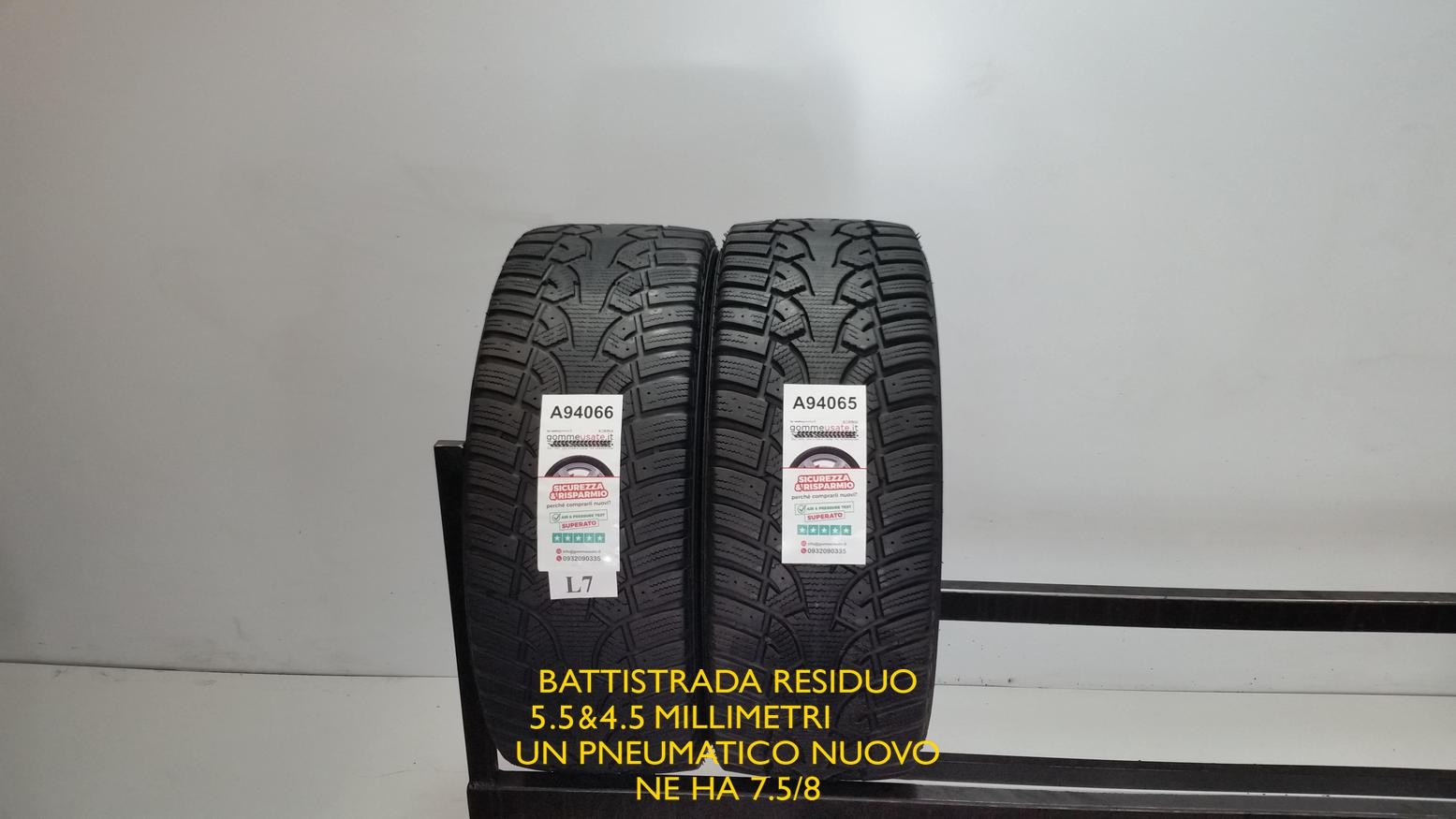 Les millimètres résiduels des pneus, mesurés avec des machines spéciales, sont inscrits en jaune sur chaque photo de produit. LES PHOTOS DU PRODUIT SONT RÉELLES, VOUS RECEVREZ EXACTEMENT LES PNEUS VU SUR LES PHOTOS ! UN PNEU NEUF DE MÊME TAILLE A 7,5/8 millimètres de bande de roulement. Chaque pneu est gonflé, avec une machinerie spéciale, entre 2 et 4 bars pour examiner d'éventuels renflements anormaux sur l'épaule de la carcasse. Nous procédons à la vérification d'éventuelles irrégularités, chaque pneu est inspecté visuellement par nos techniciens spécialement formés. Cela signifie que tous nos pneus sont garantis et testés avant d'être proposés à la vente. Sur demande, nous émettons un reçu fiscal ou une facture : il est nécessaire de communiquer les coordonnées du propriétaire ainsi.