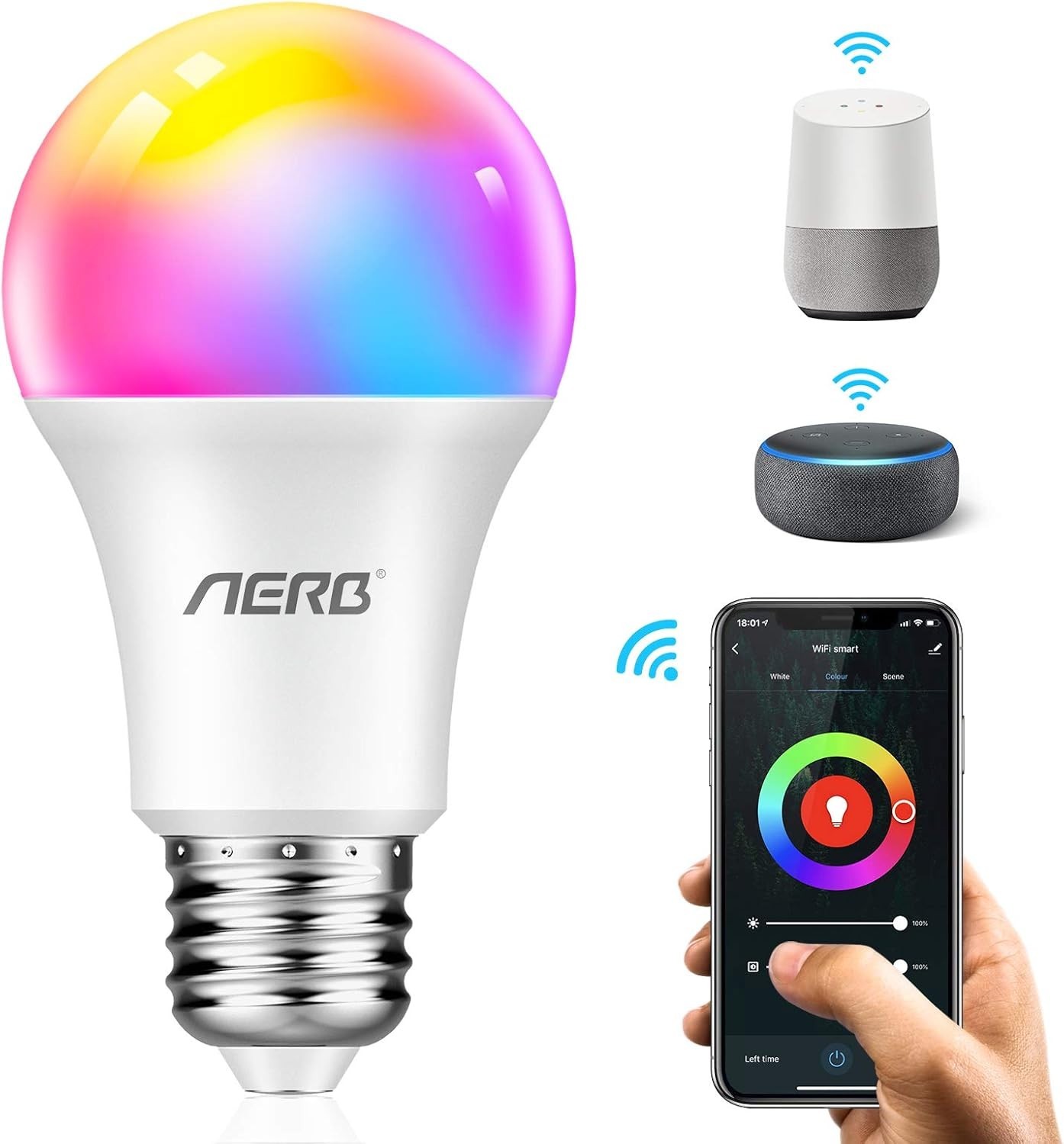 Ampoule connectée AERB│Lot de 2│Smart WiFi E27 Multicolore│Contrôle vocal Alexa