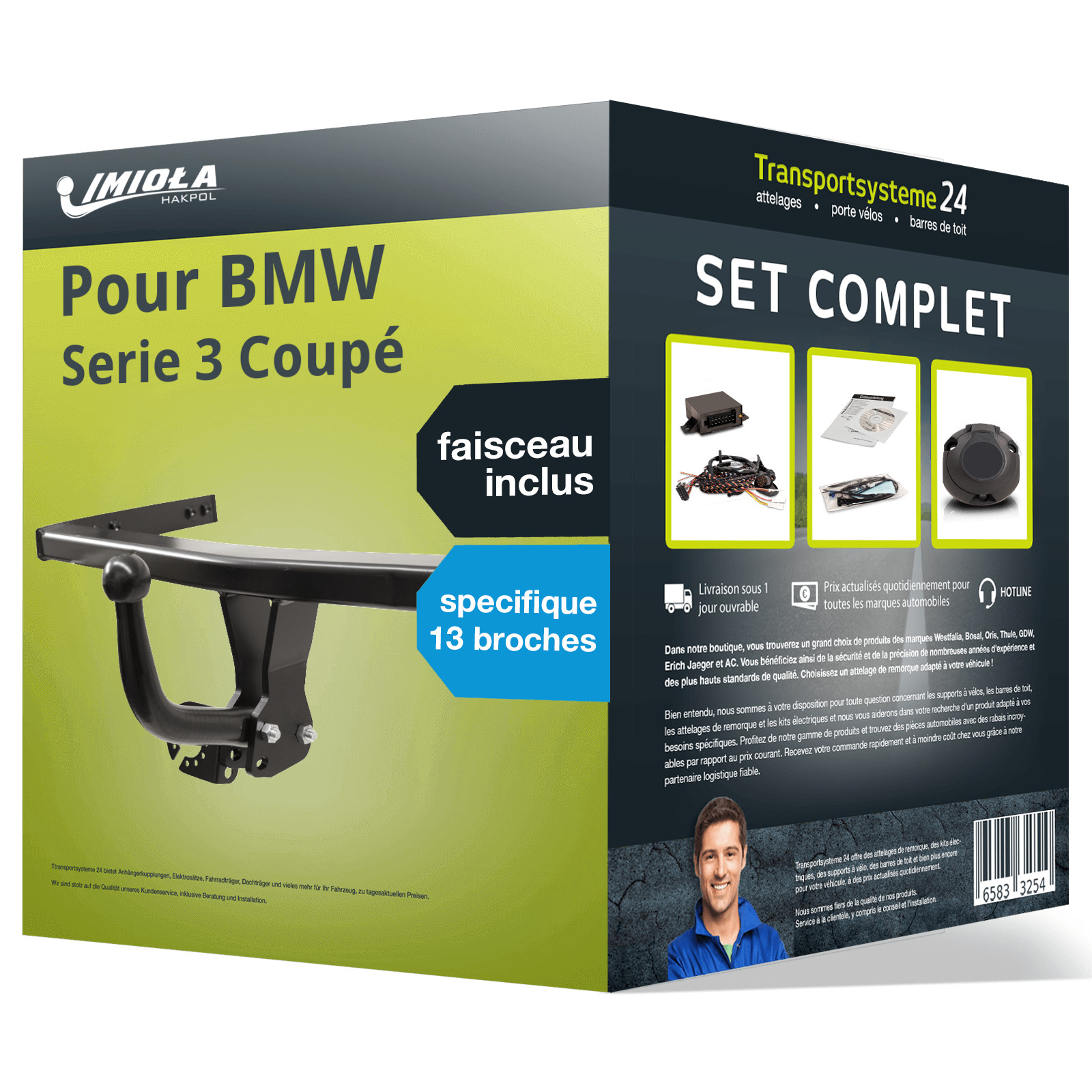 PACK COMPLET pour BMW Serie 3 Coupé 05.1999 - 05.2006, composé d'un attelage col de cygne Imiola Hak-Pol et d'un faisceau 13 broches Spécifique au véhicule TowTec. D’autres informations produit importantes consultables dans la notice de montage - veuillez cliquer sur le lien!.