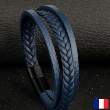 Bracelet pour Homme en Cuir Corde Tressé Perles Marron Fermoir Acier #2