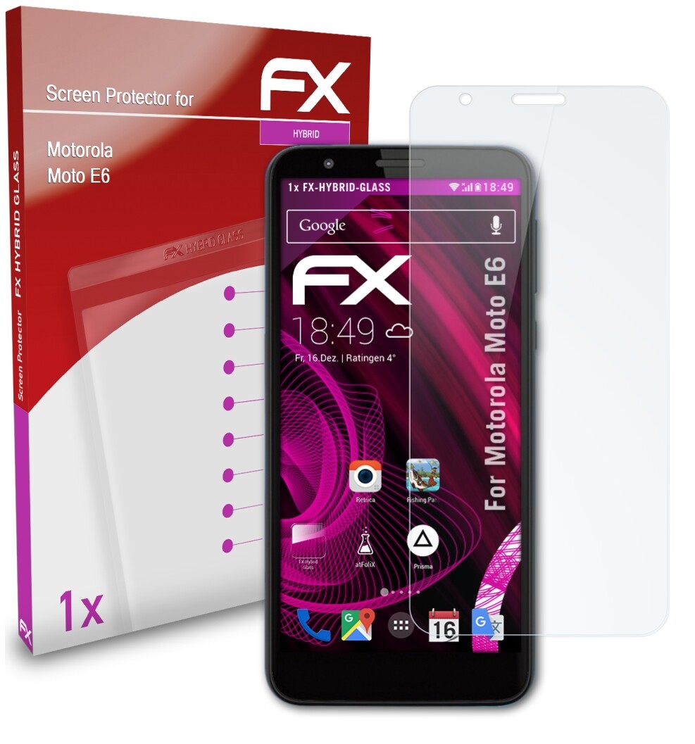 Ultra mince et super dur - 9H - mieux que le vrai verre: atFoliX FX-Hybrid-Glass Verre film protecteur pour Motorola Moto E6 - Made in Germany! Expédié et vendu par @FoliX - Original et directement du fabricant! Accessoires de montage inclus: chiffon de nettoyage, outil d'application (racloir), Lien aux instructions de montage en plusieurs langues (incl. Vidéo Assemblée).