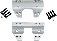 Ensemble de fixations de guidon LA CHOPPERS Ils se glissent sous le couvercle d'origine Tout le matériel nécessaire à l'installation est inclus Usinage CNC en aluminium 6061-T6 avec finition brute Filets de vis de riser de 1/2""-13 Le couvercle supérieur présente des trous filetés pour verrouiller les haltères en place équipés de écrous fabriqués aux États-Unis.