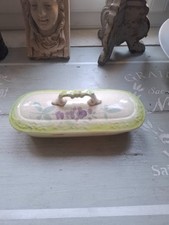 Ancien porte peigne, porte brosse à dents en faïence terre de fer polychrome, modèle "Clématite" de la manufacture Keller et Guérin - Lunéville En bel état. Seuls de petits éclats, sans incidence, sont à signaler, voir photos Dimensions : 21 x 7,8 x 3,5 cm Collection, décoration, nécessaire de toilette ancien, porte peigne, porte brosse à dents, faïence, terre de fer, Keller & Guérin, Lunéville
