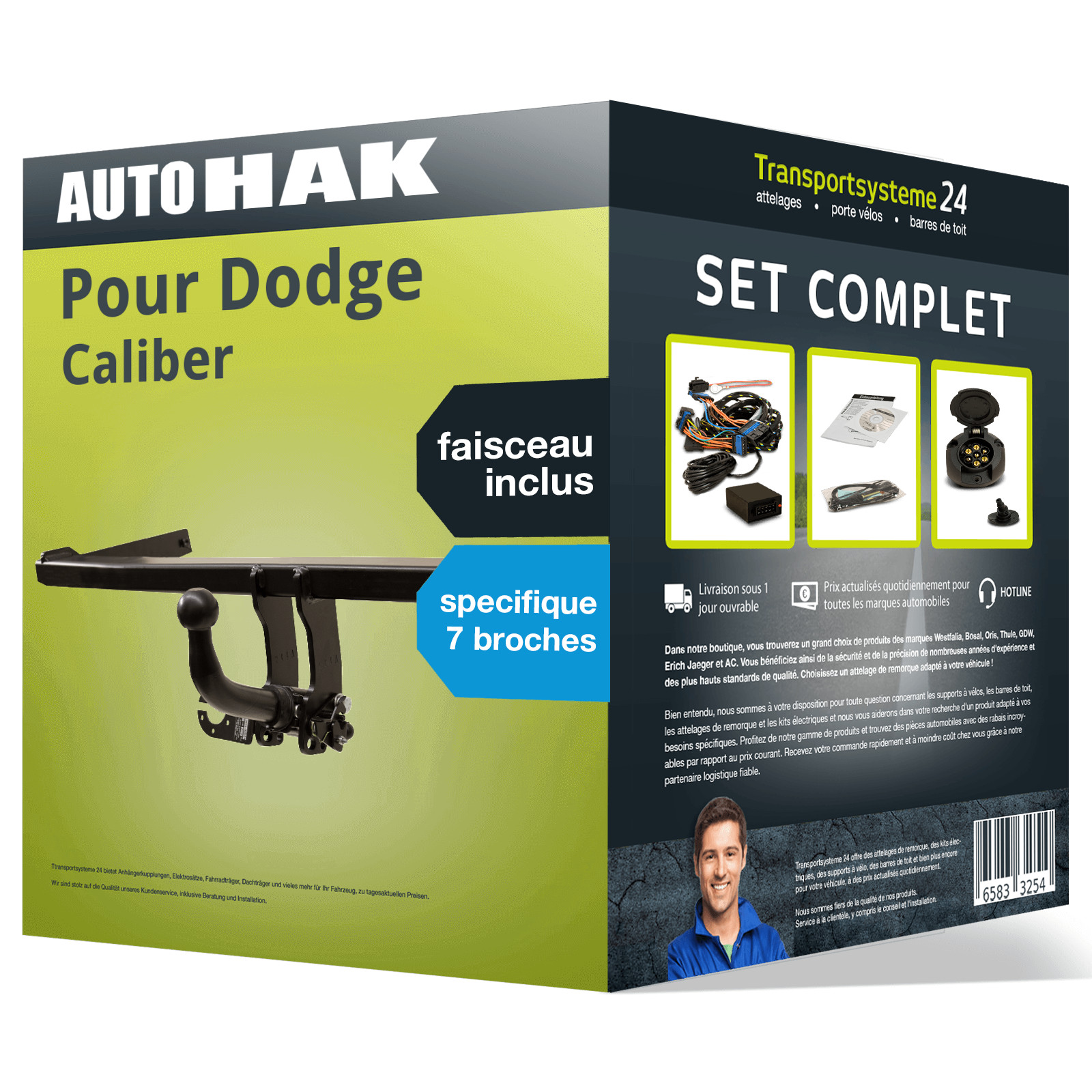 PACK COMPLET pour Dodge Caliber 06.2006 - à ce jour, composé d'un attelage rotule démontable Auto Hak et d'un faisceau 7 broches Spécifique au véhicule TowTec. D’autres informations produit importantes consultables dans la notice de montage - veuillez cliquer sur le lien!.