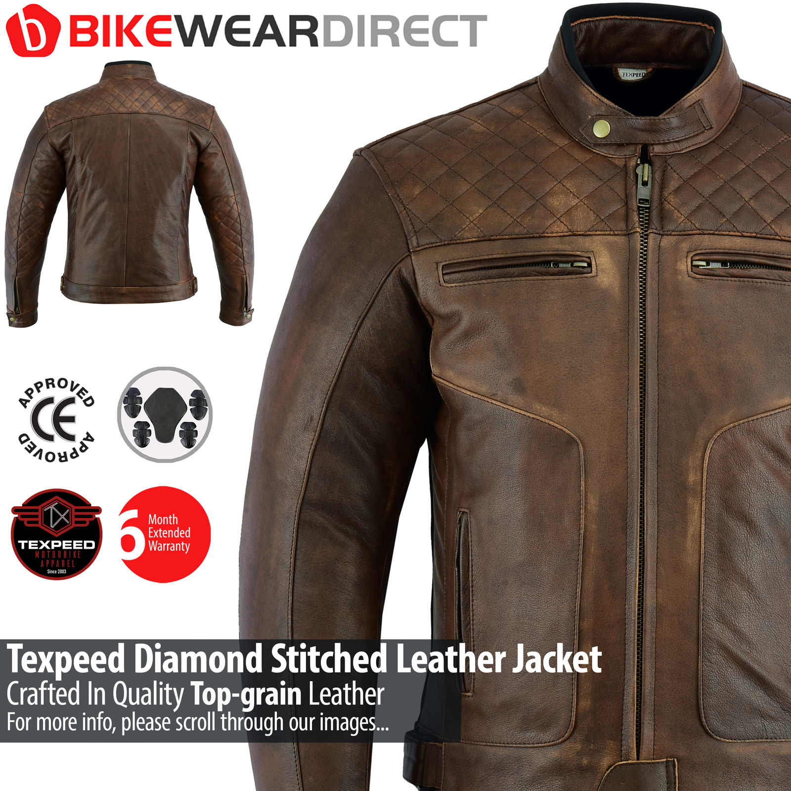 Veste De Moto En Cuir Marron Avec Armure De Motard CE Authentique