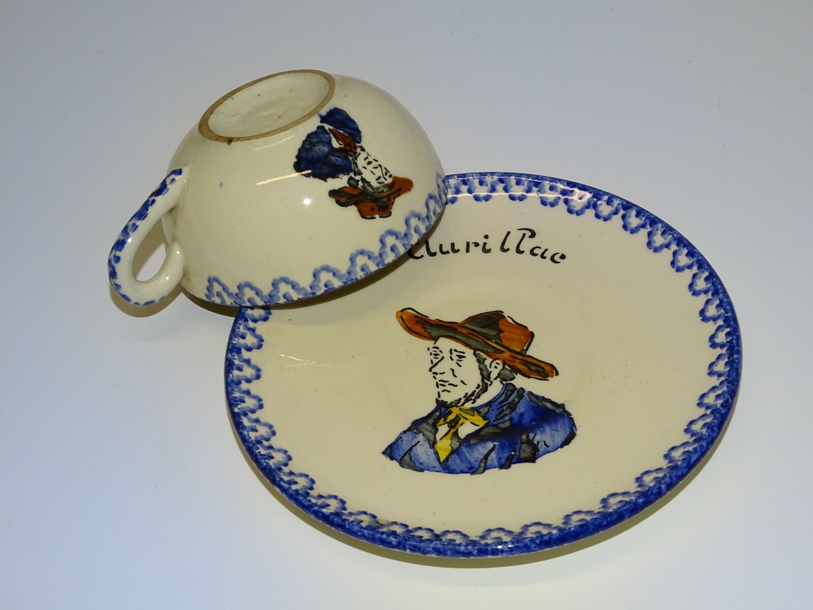 -JOLIE ANCIENNE TASSE et sa SOUCOUPE CERAMIQUE Souvenir AURILLAC Années 50 D