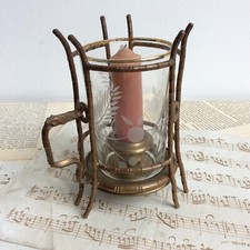 bougeoir à main ancien doré en laiton vintage XIXe siècle