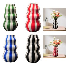 Vase en Céramique Rayé Noir Jaune Vintage. 3 éclats dessous Hauteur 27,5 Large 18 cm