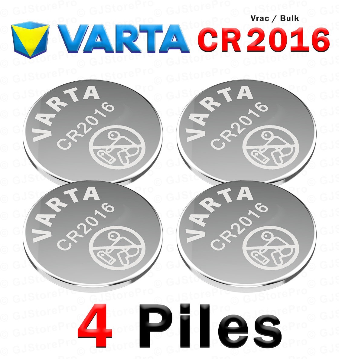 CR2016 : 1 à 60 Piles. Piles Bouton Lithium 3VVrac / Bulk VARTA. Obligation de respecter les consignes de sécurité imposées par le fabricant. Les piles sont emballées pour éviter les courts-circuits : ne les touchez pas à mains nues et ne les empilez pas.