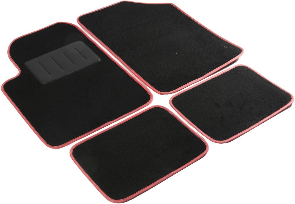 Start propose le jeu de tapis Essential avec bordure rouge. Universels pour toutes les voitures, ils sont non toxiques, antistatiques et inodores.