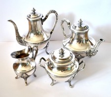 Service à café, cafetière + pot à lait, sucrier en métal argenté poinçonnés.
