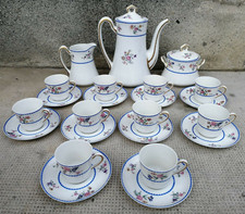 Cet ensemble se compose d'une cafetière, d'un sucrier et d'un petit pot à lait. Le sucrier lui a son couvercle, et avec le pot à lait, le service est complet. Sucrier 11,5 de hauteur par 7,3 cm de diamètre.