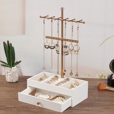 Matériau durable : l'organisateur de bijoux de table est fabriqué en métal plaqué de haute qualité avec un tiroir en bois robuste, tendance et élégant. 【Cadeaux pratiques】 Présentoir à bijoux, jolis cadeaux pour vos familles et amis pour la Saint-Valentin, le Nouvel An, un anniversaire ou un mariage.