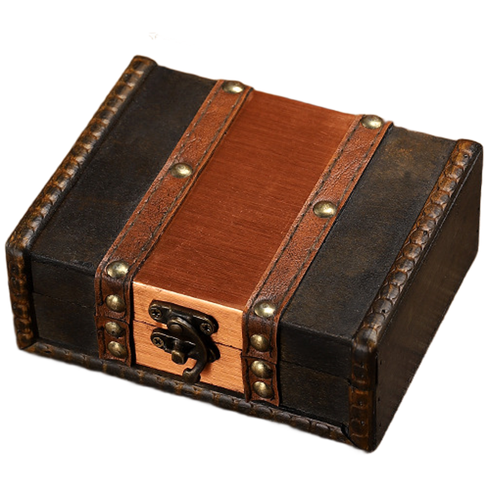 Ancienne boîte de rangement en bois verrouillable pour organisation bijoux et b