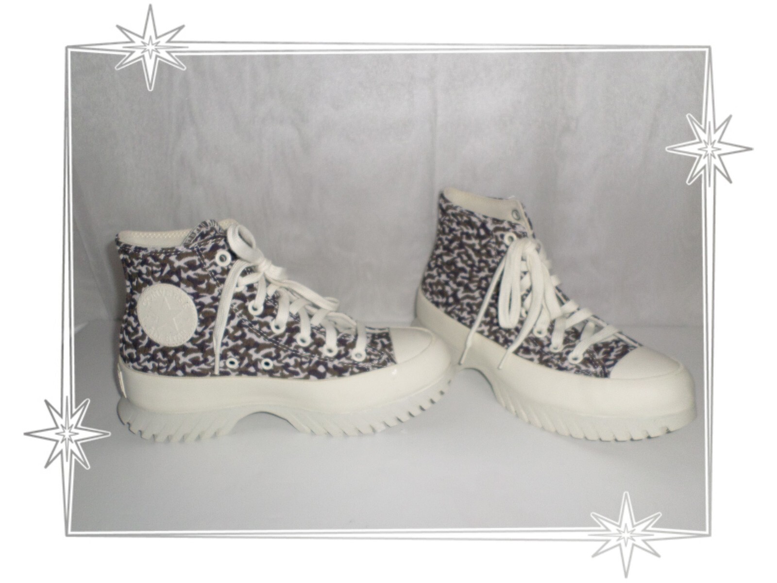 Converse Sneakers Compensées Montantes Lugged Léopard Marron Blanc Kaki P 37