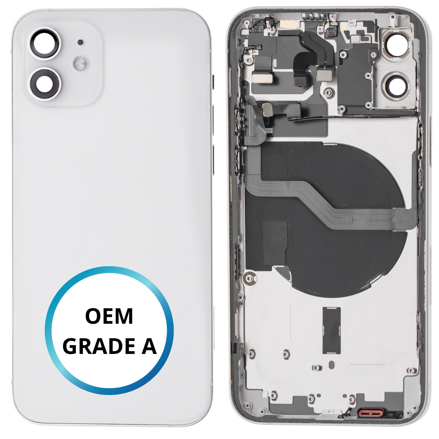Châssis arrière - iPhone 12 - OEM GRADE A - EU VERSION. Composants déjà installés Nappe Flash.