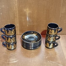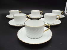 6 tasses à café et soucoupes anciennes porcelaine de Limoges, décor fleur dorure
