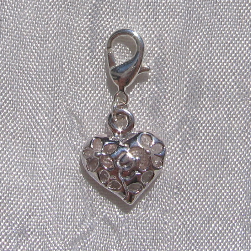 V403 - BRELOQUE COEUR CHARM SUR MOUSQUETON EN MÉTAL ARGENTÉ POUR BRACELET BIJOUX