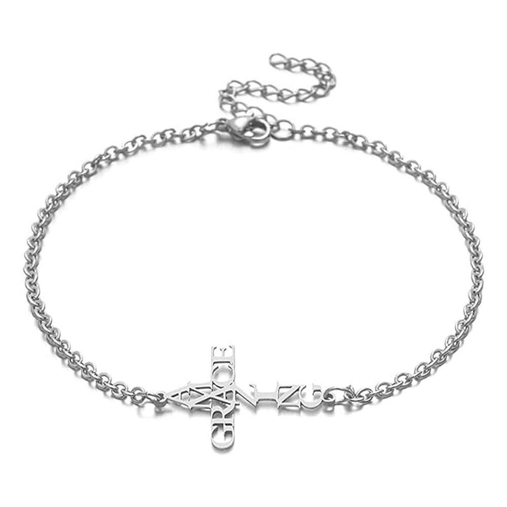 Collier en acier inoxydable Amazing Grace Cross - Argent, Foi chrétienne, Église. Conception: collier croix créatif. Métal : acier inoxydable + alliage de zinc. It normally takes .