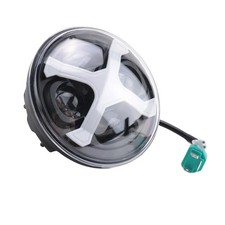 NONE Phare de moto rond LED jaune, 7 pouces, universel, 12V, H4, 35W, avec support noir, accessoires de moto