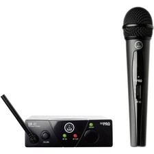 AKG WMS 40 Mini Vocal ISM1, Système sans fil UHF avec micro à main dynamique, Récepteur non diversity avec sortie réglable sur Jack symétrique, Bande de fréquences ISM 1: 863,100 MHz - licence libre et et gratuite dans toute l'Europe, Technologie HDAP (High Definition Audio Performance), Jusqu'à 30 heures d'autonomie avec une pile AA, Indication de fonction LED, indication de batterie faible et interrupteur On/Off/Mute sur l'émetteur, 3 LEDs de statut sur le récepteur, Pince micro adaptée #288991# optionnelle non fournie