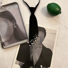 NONE Cravate en perles et strass faite à la main pour femmes, chemise abeille en cristal, uniforme scolaire, nœud papillon, décoration à la mode, accessoires de collier
