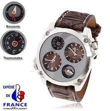 Oulm – montre à Quartz pour homme, grande taille, Style pilote de l'armée, à deux fuseaux horaires, avec bracelet en cuir