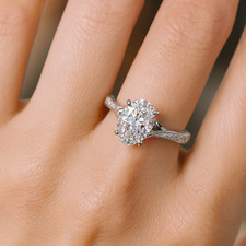 NONE Bague de fiançailles en diamant cultivé en laboratoire platine 950 coupe ovale DEF VS-VVS clarté 7Ct pierre principale 3 pierres anneaux de mariage pour dame IGI