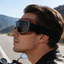 NONE Lunettes de Moto rétro lunettes Vintage Moto lunettes classiques pour Harley pilote Steampunk ATV vélo casque en cuivre