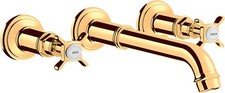 hansgrohe Axor Montreux 3 trous mitigeur lavabo 16513820 Zone Confort 180 avec poignées croisées Hauteur du bec 179 mm Plage de pivotement 120° Jet laminaire débit max. à 3 bars 5 l/min Vannes céramique chaud/froid 90° Tirant garniture de vidange G 1 1/4 adapté pour chauffe-eau Tuyaux de raccordement de type G 3/8 Taille de raccordement DN 15 ÉcoSmart
