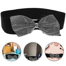 NONE Ceinture élastique en strass pour femmes, ceinture de taille noire en strass, ceinture en chaîne en PU, Double bouton-pression, ceintures florales