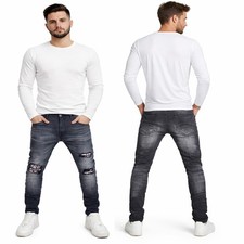 NONE Nouveaux hommes déchiré jean Baggy droit mode Vintage bleu Denim pantalon personnalité Streetwear Hip Hop haute qualité mâle pantalon