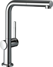 hansgrohe Talis M54 270 robinet de cuisine 72808340 Zone de confort 270 Bec en L Plage de pivotement réglable en 4 niveaux à 60° 110° 150° ou 360° jet laminaire Débit maxi à 3 bar 8 l/min système de mélange en céramique Limite de température réglable avec clapet anti-retour convient aux chauffe-eau instantanés Rallonge de tuyau par poids Longueur d'extension jusqu'à 500 mm Système anticalcaire Quick Clean