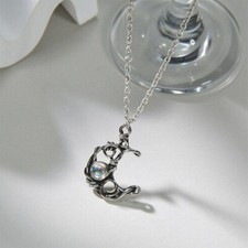 NONE Collier pendentif croissant de lune en argent regardé 925 pour femme, pierre de lune esthétique vintage, bijoux cadeaux pour filles