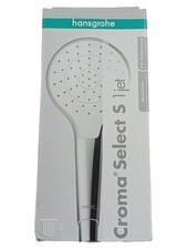 hansgrohe Croma Select S Ensemble de douche multi Numéro d'article 26561400 Type de jet: jet de massage, SoftRain, IntenseRain Changement de Select pratique Select bouton Select Taille de la pomme de douche: 110 mm pivotant côté douche contre la torsion gênante du tuyau de douche Angle d'inclinaison réglable de 90 °, le curseur pivote à gauche et à droite ainsi qu'en haut et en bas Débit maximum (à 3 bar): 16 l / min support mural en plastique chromé