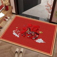 NONE Tapis de porte du trésor porte-bonheur rouge, nouvel an, tapis d'entrée, mariage festif, tapis de sol rouge, pour la maison, la chambre à coucher, antidérapant, lavable