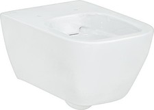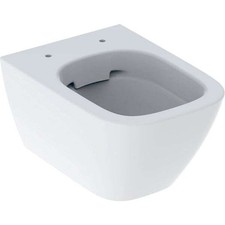 WC suspendu Geberit Smyle Square à fond creux Numéro d'article 500208018 KeraTect blanc tenture murale sans monture formulaire fermé chasse d'eau avec 4,5 litres Veuillez commander le siège de toilette séparément - non inclus - 500240011, 500239011, 500237011, 500238011, 500687011 ou 500688011.
