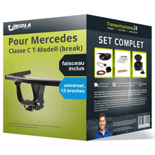 Auto-Hak propose aujourd'hui une gamme complète d'attelages pour plus de 500 modèles de véhicules. Avec plus de 30 ans d'expérience, la marque Auto-Hak, de par la conception et la qualité des produits, sera à la hauteur de vos attentes. Facile à monter grâce à la notice de montage fournie (partie mécanique). Caractéristiques : Indications : Mercedes Classe C Break type S205 - sauf modèles avec ouverture assistée du hayon, Pack AMG, AMG, Hybrid et Plug-in Hybrid Date de fabrication : 10/14- Type de rotule : Rotule horizontale démontable sans outil Masse remorquable : 2150Kg Masse statique : 75Kg Dépose du pare-chocs : Oui Découpe du pare-chocs : Pas de découpe Caractéristiques du faisceau : Type : Faisceau universel multiplexé 7 broches avec boitier électronique pour protéger l'ordinateur de bord du véhicule Compatibilité feux LED : Oui Passage à la valise : Non Longueur des fils : 3m de fils pour le montage du module, 5m de longueur pour le fil d'alimentation Cosse : Pré-montée sur le connecteur du boitier électronique Gestion des radars de recul : Non, désactivation manuelle via interrupteur au tableau de bord si le véhicule en est pourvu