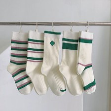NONE 5 paires femmes coton Argyle confortable équipage chaussettes imprimé fleuri mode moyen Tube chaussettes courtes ensemble Pack