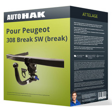 Auto-Hak propose aujourd'hui une gamme complète d'attelages pour plus de 500 modèles de véhicules. Avec plus de 30 ans d'expérience, la marque Auto-Hak, de par la conception et la qualité des produits, sera à la hauteur de vos attentes. Facile à monter grâce aux notices de montage fournies (partie mécanique et partie électrique). Indications : Peugeot 308 I SW (Break) Date de fabrication : 05/08-05/14 Type de rotule : Rotule horizontale démontable sans outil Masse remorquable : 1700Kg Masse statique : 75Kg Dépose du pare-chocs : Non Découpe du pare-chocs : Pas de découpe Poids de l'attelage : 18,70Kg Caractéristiques du faisceau : Type : Faisceau universel multiplexé 7 broches avec boitier électronique pour protéger l'ordinateur de bord du véhicule Compatibilité feux LED : Oui Passage à la valise : Non Longueur des fils : 3m de fils pour le montage du module, 5m de longueur pour le fil d'alimentation Cosse : Pré-montée sur le connecteur du boitier électronique Gestion des radars de recul : Non, désactivation manuelle via interrupteur au tableau de bord si le véhicule en est pourvu