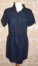 NONE Robe en lin à manches longues en coton de style simple, chemise maxi décontractée, mode rétro, bouton adt, pull avec poches, document solide