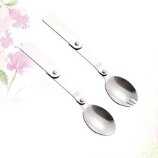 NONE Fourchette cuillère pliante 2 en 1 en titane pur pour le camping, la randonnée, le sac à dos, ustensile de voyage léger et durable avec un design compact