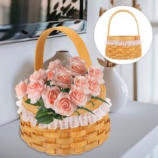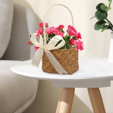 NONE Panier de fleurs avec nœud en Satin blanc pour mariage, panier de transport de fleurs avec poignée en perles, adapté aux demoiselles d'honneur et aux filles de fleurs