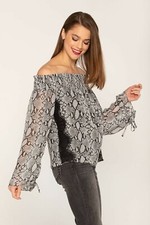 Chemisier manches blousantes imprimé bicolore, voile jacquard - BlancheporteCoup de coeur pour ce chemisier à l'imprimé graphique qui actualisera votre look city ! En voile jacquard, il présente des rayures satinées qui donneront du caractère à votre allu