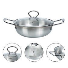 NONE Pot à soupe Ramen coréen en acier inoxydable plaqué or, Double oreille avec couvercle, marmite chaude, ustensiles de cuisine de Camping, fournitures de cuisine et de salle à manger, 1 pièce