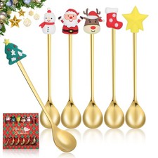 NONE Cuillère de Noël en acier inoxydable 410, fourchette à fruits, cuillère à café Elk Cartoon, décoration d'arbre de Noël, cadeau de Noël