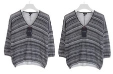 Femmes tricoté trois quarts manches pull femme rayé mince évider col rond pull dames haut ample